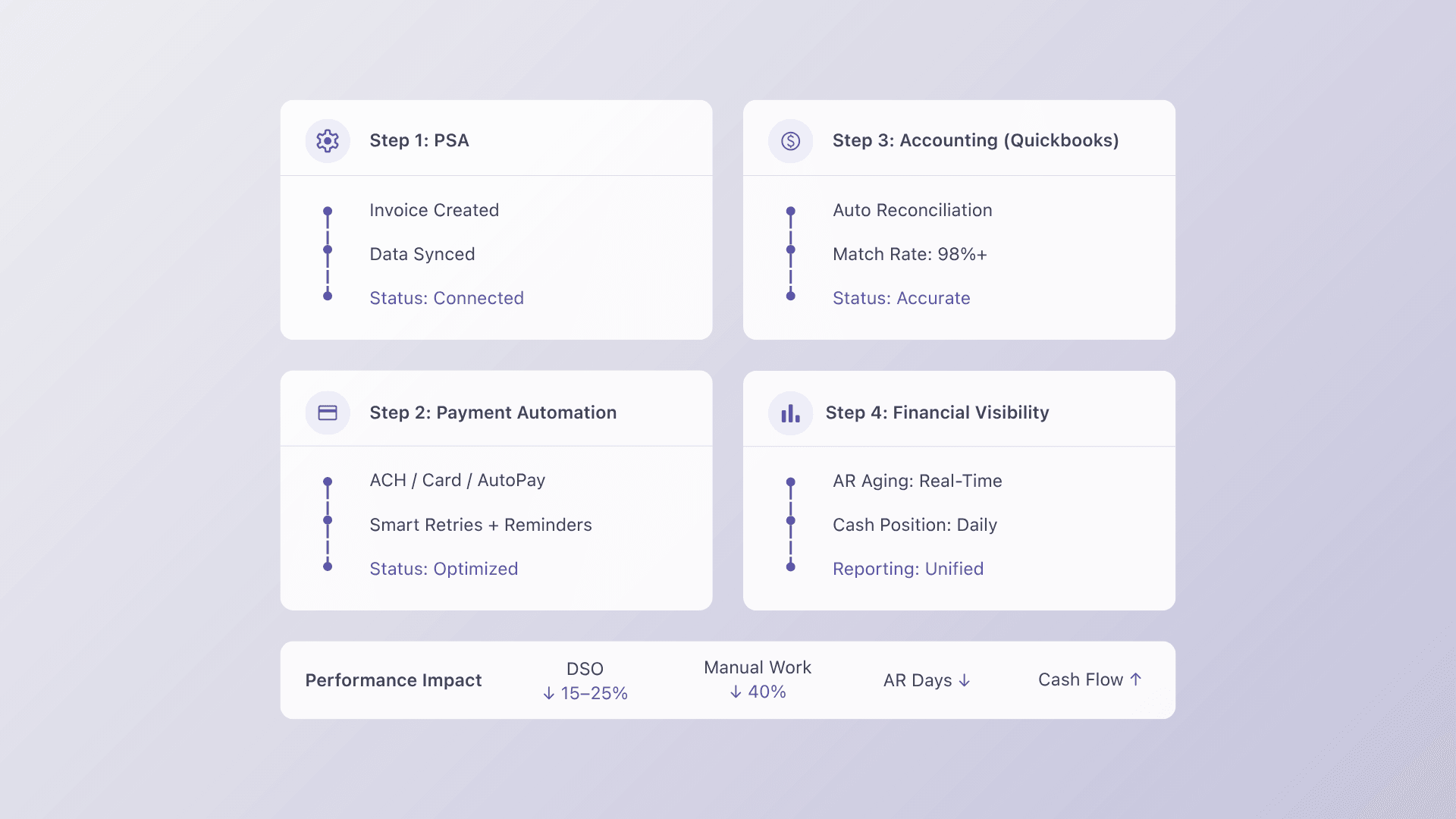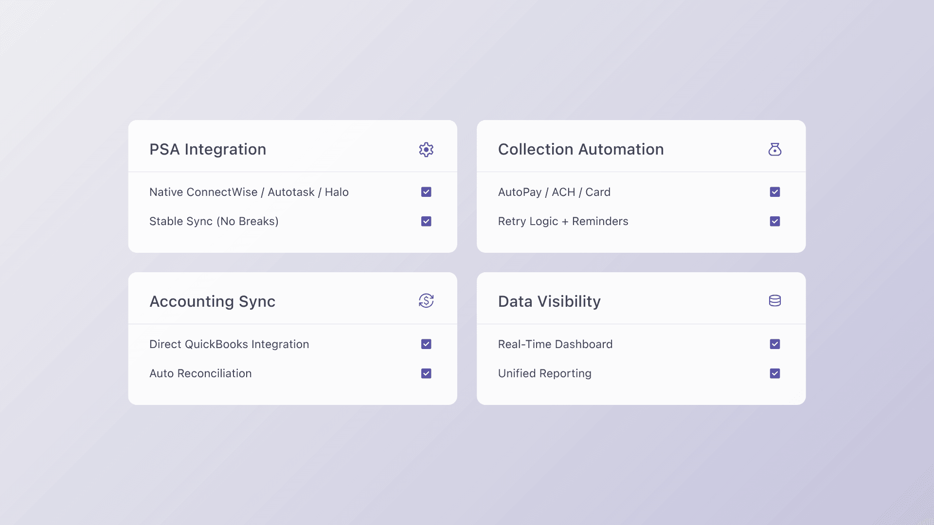 MSPs often rely on disconnected systems where PSA platforms, accounting tools, and payment processors operate independently, which creates reconciliation gaps and delays in financial visibility. When PSA-to-QuickBooks sync breaks during updates, teams are forced into manual re-entry, increasing errors and operational friction.