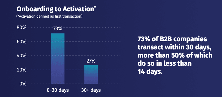 For businesses that leverage Alternative Payments for their online B2B payment processing, online payments make up 35% of their total revenue in their first month, and by the ninth month this grows to making up over 76% of total revenue.Â