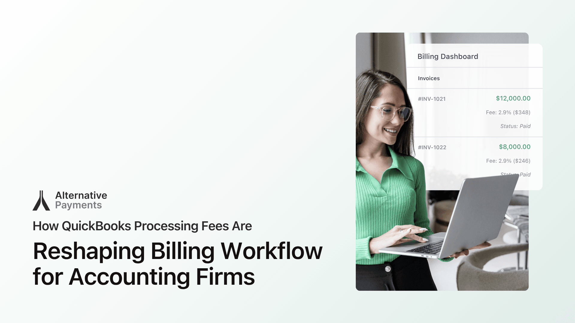 Alternative Payments helps accounting firms reduce QuickBooks processing fees, automate billing, and improve cash flow visibility.