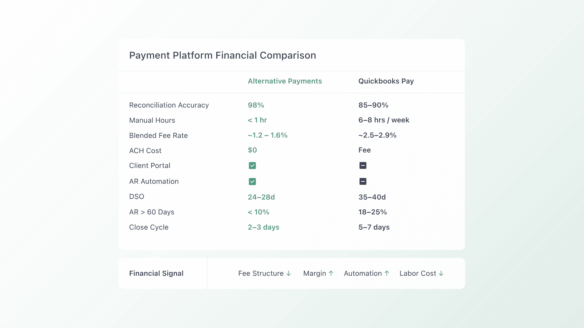 You can see a detailed breakdown of how Alternative Payments stacks up against QuickBooks Payments at alternativepayments.io/vs/quickbooks.