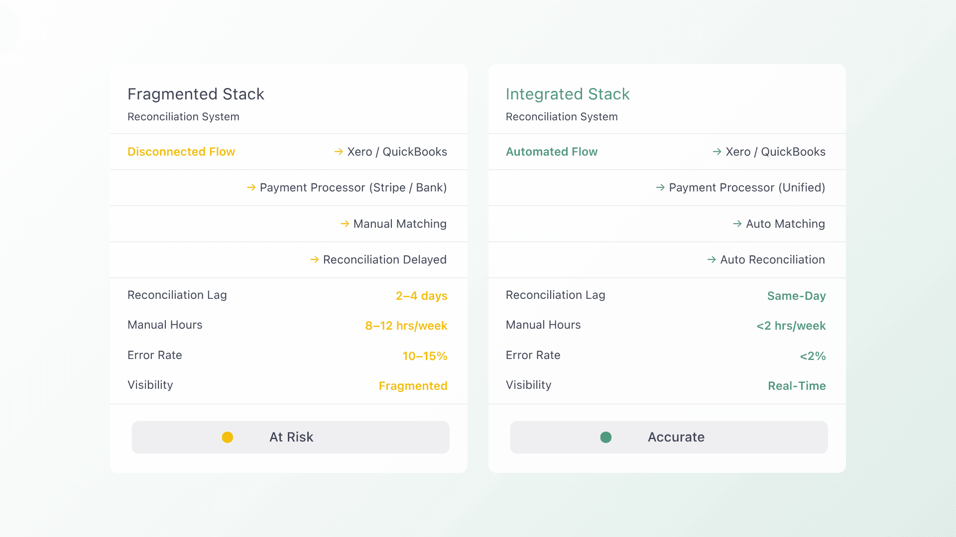 When payment data flows through platforms that were not built to stay in sync with each other, reconciliation errors can surface that take hours to untangle. For a CAS firm billing across dozens of client accounts, that time compounds quickly.
